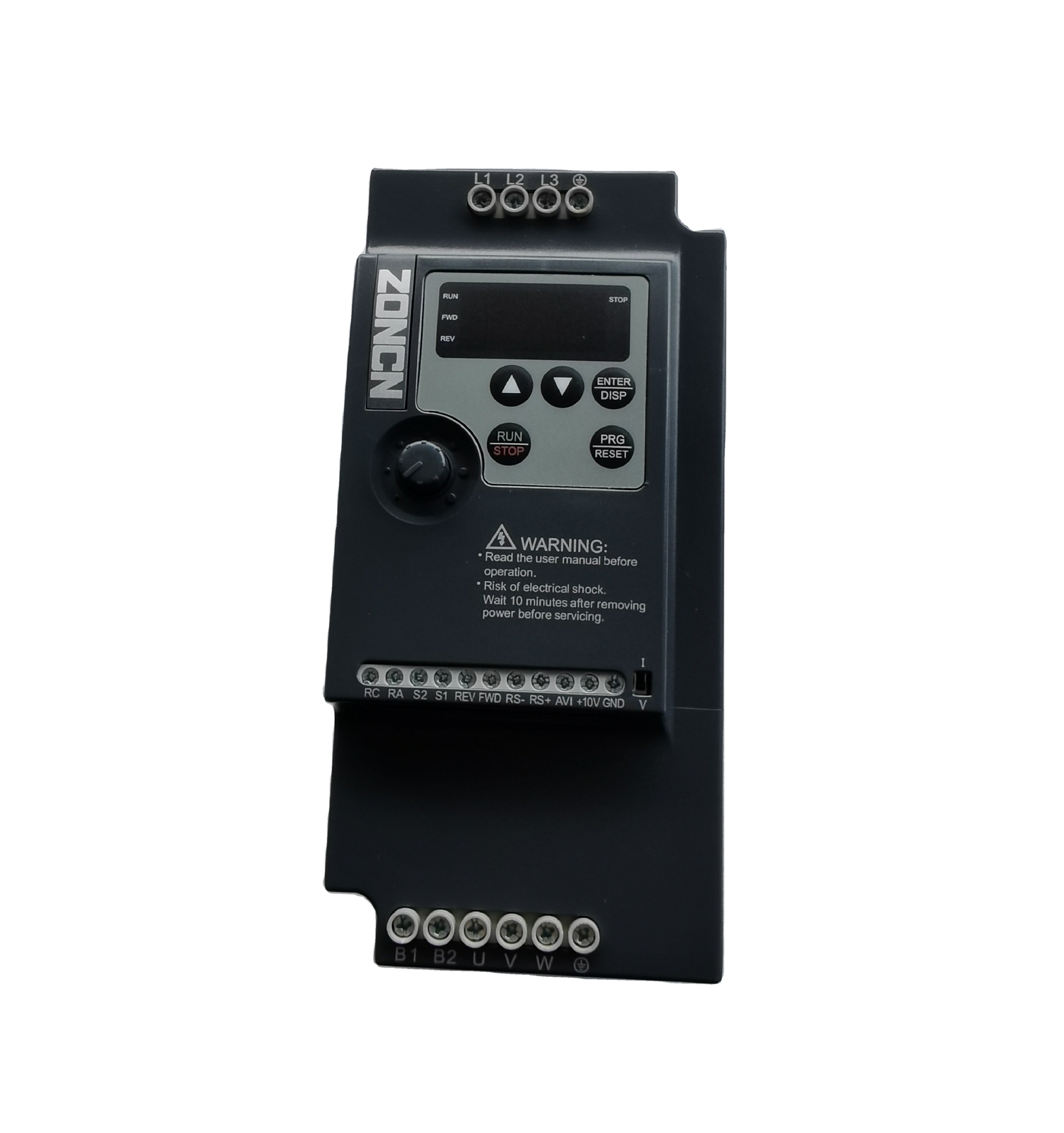 ZONCN VFD ইনভার্টার একটি কমপ্যাক্ট এবং সাশ্রয়ী সমাধান যা সীমিত স্থানের অ্যাপ্লিকেশনগুলির জন্য ডিজাইন করা হয়েছে। এর ছোট আকার এবং সাশ্রয়ী দাম VFD ইনভার্টারকে ছোট আকারের স্থাপনার জন্য আদর্শ করে তোলে। V/F কন্ট্রোলের সাথে, VFD ইনভার্টার দক্ষতার সাথে মোটরের গতি নিয়ন্ত্রণ করে, যা শক্তি সাশ্রয় নিশ্চিত করে। বিল্ট-ইন PID কন্ট্রোল VFD ইনভার্টারের নির্ভুলতা বাড়ায়, যা এটিকে বিভিন্ন শিল্প প্রক্রিয়ার জন্য উপযুক্ত করে তোলে।